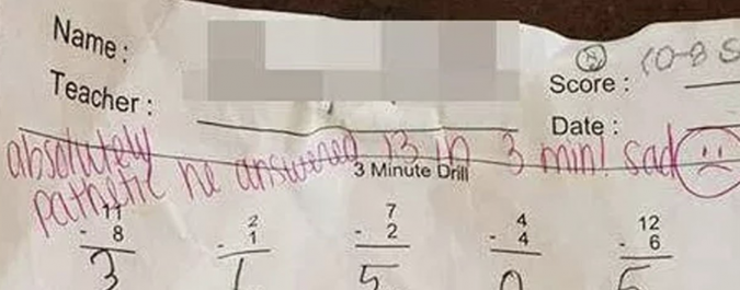 Chris kam zu wissen, dass Kamdyn 3 Minuten gegeben wurde, so viele Fragen, zu versuchen, wie er konnte und sein Junge geschaffen dreizehn in drei Minuten zu tun, was eine gute Punktzahl von allen Standards war, aber sein Lehrer, Alyssa, hatte eine andere Meinung.