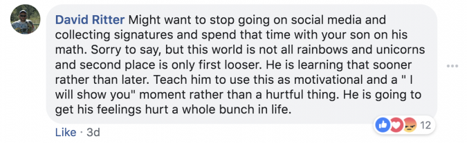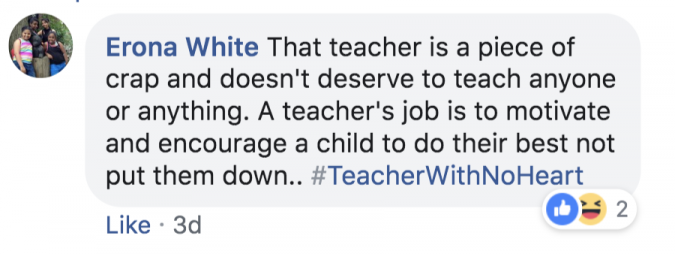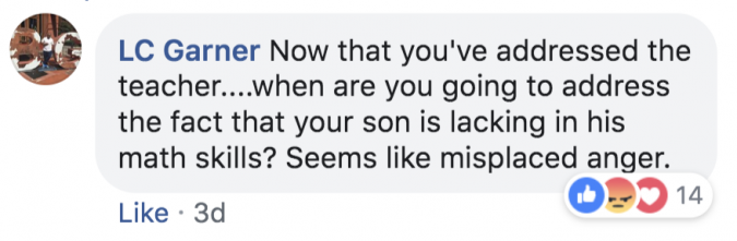 Die Anmerkungen zu Chris 'Post waren vielfältig, um die wenigstens zu sagen, einige waren wütend, einige hatten tut mir leid für das Kind, einige waren kritisch von Chris, einige waren an den Lehrer unhöflich, um den Lehrer zu begünstigen. Einige kommentierten sogar die mathematischen Fähigkeiten von Kamyn.