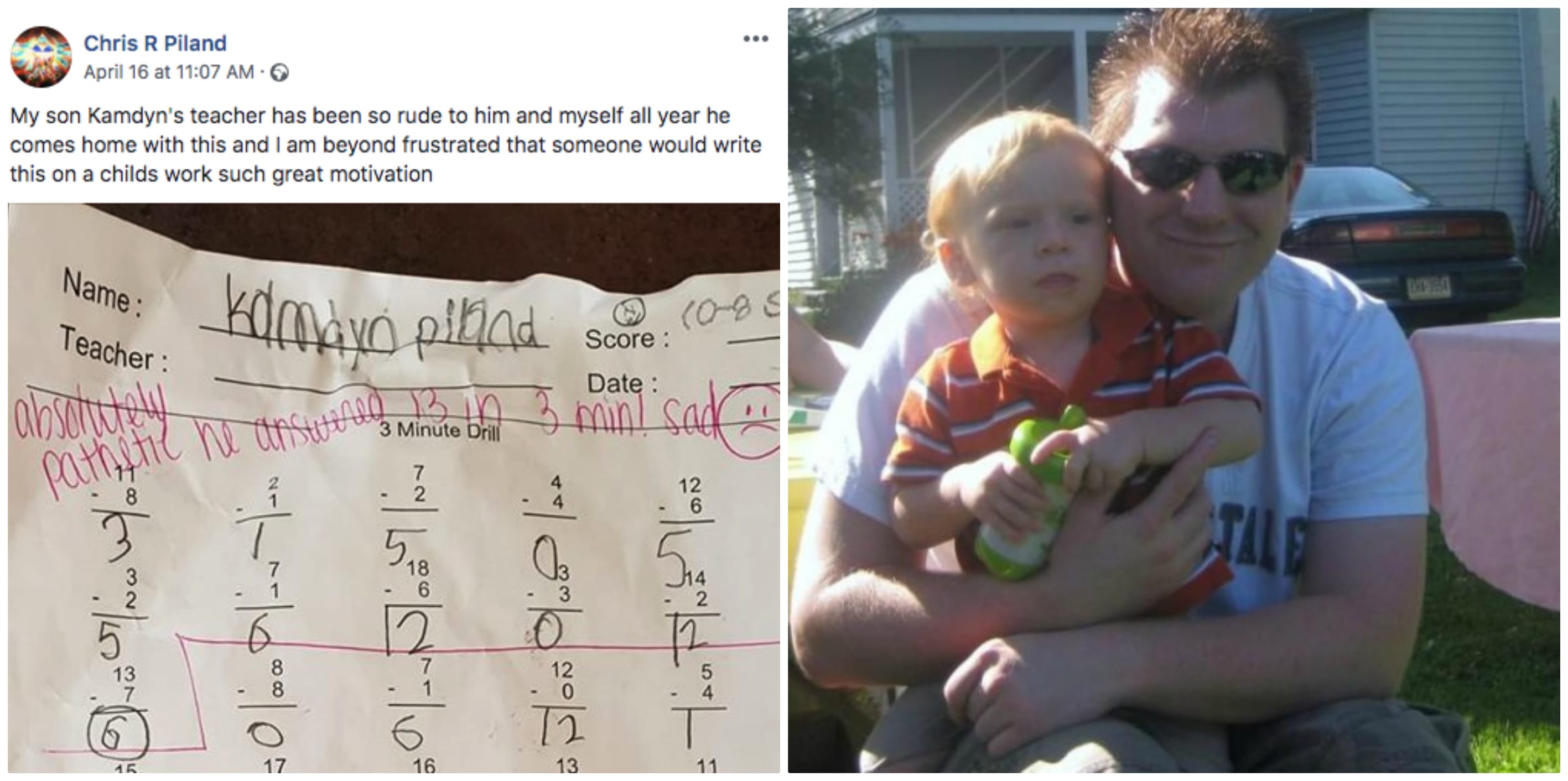 Chris hat sich nicht niedergelassen, er entschied sich, mit diesem enttäuschenden Verhalten auf dem Teil des Lehrers zu öffentlich zu gehen und online auf seinem Facebook zu posten. Er hat ein Foto der Schularbeit veröffentlicht. Kamyn zeigte ihm mit der Beschriftung: "Der Lehrer meines Sohnes war so unhöflich zu ihm und mir selbst. Das ganze Jahr kommt er damit nach Hause, und ich bin jenseits frustriert, dass jemand das auf die Arbeit eines Kindes schreiben wird. Eine solche tolle Motivation. "