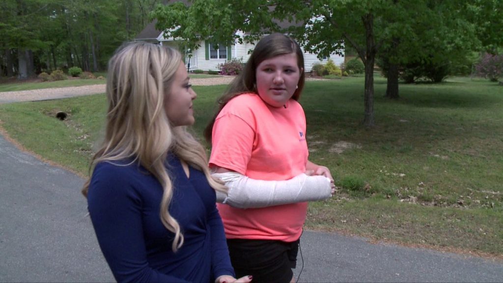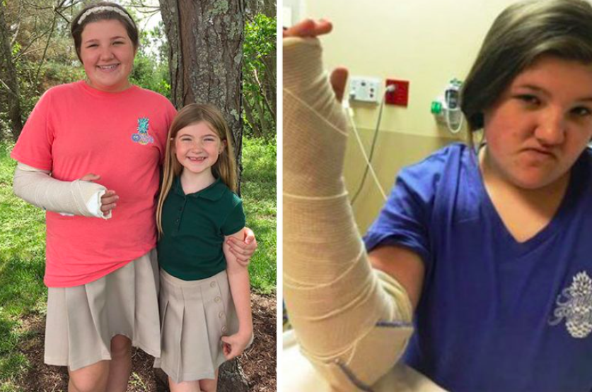 Maddie beim Angriff von Paul, der unwissentlich eine Wachstumsplatte in ihrem Knochen brach. Der Knochen ist ein sensibler und braucht Zeit, um zu heilen. Obwohl der Mut des Mädchens nicht geschädigt wurde, war der Mut des Mädchens nicht geschädigt und es gelang es, das Leben ihrer Schwester zu retten.