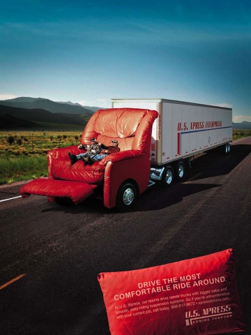Diese Jobanzeige von US.S. Express verfügt über die Vorteile des Fahrens für sie. Die Anzeige sagt: "Fahren Sie mit den angenehmsten Fahrten herum. Bei U.S. Xpress fahren unsere Teams neuere Lkw mit größeren Kabinen und glatten, leicht reitenden Aufhängungssystemen. Wenn Sie also mit Ihrem aktuellen Job unangenehm sind, rufen Sie heute an. " Vielversprechend genug, damit jeder Fahrer an ihre Tür klopft.