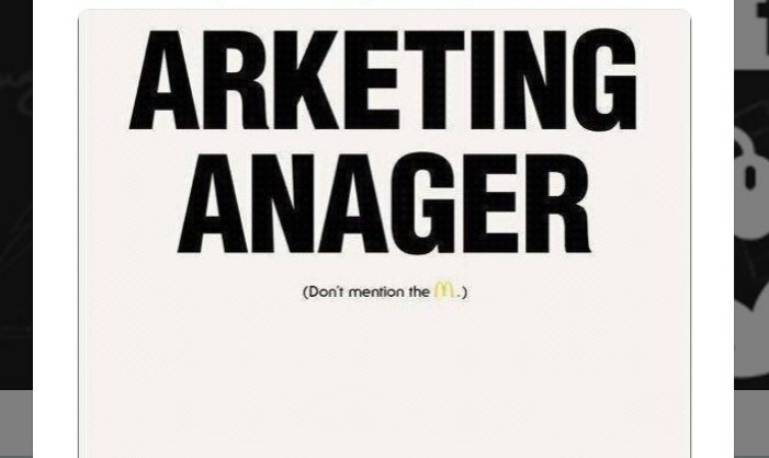 Im Jahr 2017 schickte Burger King eine witzige Stellenanzeige für einen Marketing-Manager heraus suchen. Die Anzeige erwähnte sie durch einen kleinen Text für ein „ARKETING anager“ gefolgt suchen sagen: „Do des M nicht erwähnen“. Das Design verwendet absichtlich falsche Schreibweise eine Botschaft gegen Burger King des Wettbewerbers auszusenden, McDonalds.