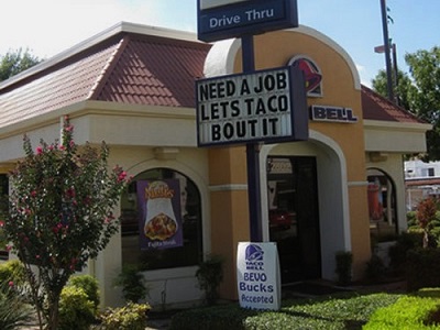 Dieser beginnt mit der Frage "Benötigen Sie einen Job? Lass uns tako kämpfen ". Die berühmte Fast-Food-Kette, Taco Bell, erstellt diese Anzeige vor ihrem Durchfahren. Es ist ein klassisches Wortspiel mit ihrer Marke, Tacos und spricht über das Vorstellungsgespräch. Eine clevere Anzeige, in der Tat!
