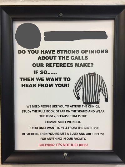 Diese Anzeige stammt von einer Schule, die auf der Suche nach einem neuen Schiedsrichter für ihr Fußballmannschaft ist. Der Beitrag hebt alle Verantwortlichkeiten des Schiedsrichters hervor und nennt gleichzeitig diese Leute, die denken, dass es leicht ist, ein Schiedsrichter zu sein und einfach zurückzulehnen und von den Bänken zu schreien.