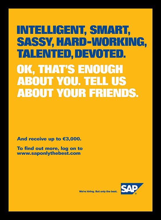 Ein Referral-System ist eine großartige Möglichkeit, mehr Antragsteller einzubringen. Fast jedes Unternehmen verwendet diese Technik, um ihre Mitarbeiter dazu zu bringen, Bewerber in einbringen und ihnen monetäre Belohnungen als Ermutigung zu geben. Dies ist insbesondere eine sehr intelligent geschriebene auffällige Anzeigenanzeige.