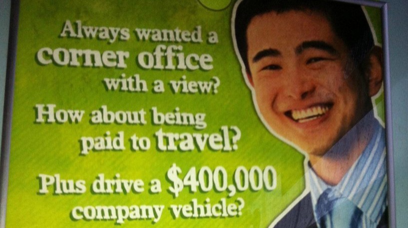 Eine Verkaufsberaterauftragsauflistung erwähnte die erforderlichen Fähigkeiten, um "arrogant" zu sein ", muss ein hohes Maß an Selbstwertigkeit haben", "Wunsch, Kunden abzureißen, um viel Geld zu machen". Es hat auch erwähnt, dass der Arbeitgeber angeben wird, wie der Antragsteller eines Tages die Führungsstufe erreichen könnte, aber es stimmt nicht, da "die gleichen Idioten seit vielen Jahren die gleichen Zweige verwaltet haben". Erstaunlicherweise beantragten 80 Leute dafür.