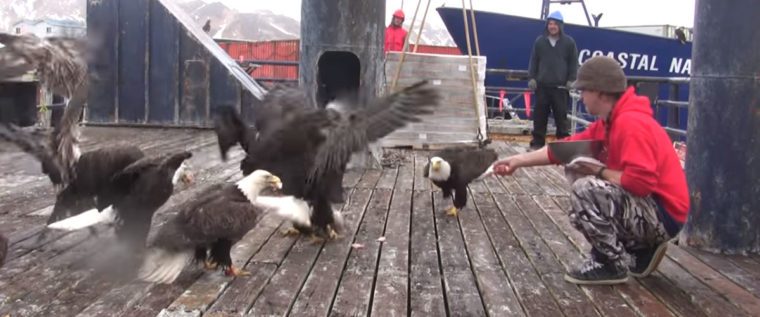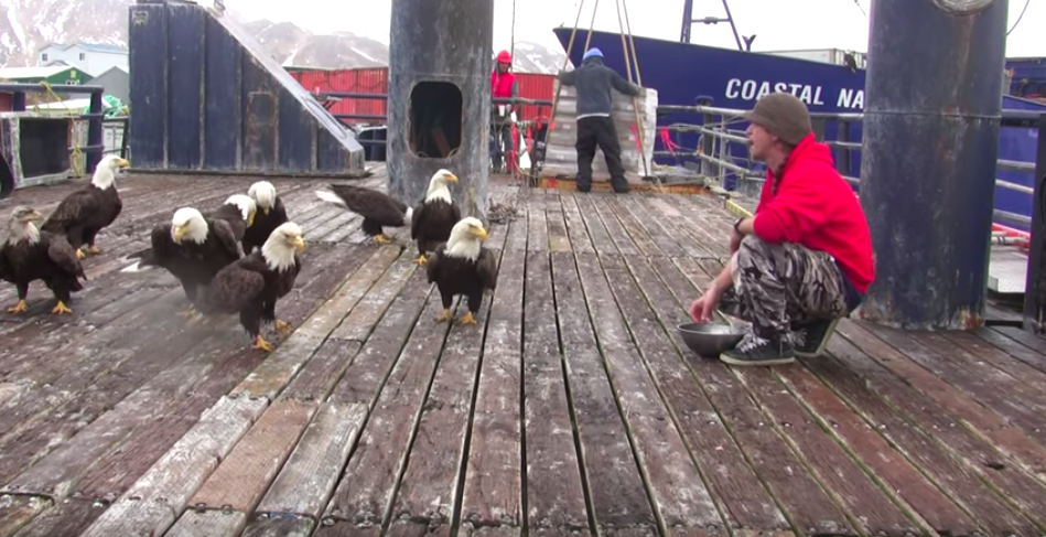 Ein alaskischer Fischer war erstaunt, um einen kahlen Adler am Dock zu sehen, und was als nächstes folgte, lässt ihn verblüfft