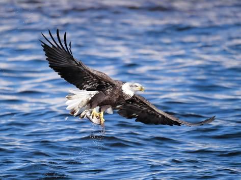 Kahler Adler haben Hohlflügel und riesige Flügel, die ihnen manchmal helfen, zu schweben. Sie können sicherlich ziemlich gut schwimmen. Und diese Vögel schweben, um einen schwerwiegenden Fisch von der oberen Wasserschicht zu ergreifen und sie als ihr Essen zu schätzen.