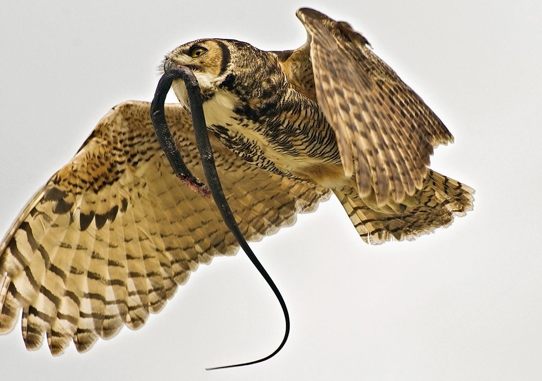Eulen Lieblings-Snack beinhaltet Schlangen. Sie halten sich jedoch von giftigen Schlangen weg. Die Eulen haben einen Vorteil gegenüber Schlangen, da sie am Himmel fliegen und sie leicht von dort aus erkennen können. Das ist der Grund, warum sie eines der Prime-Raubtiere von Schlangen bleiben.