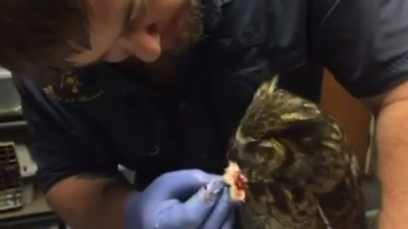 Eine große gehörnte Eule reagierte überwältigend, als sie ihren Retter nach vielen Tagen sah!