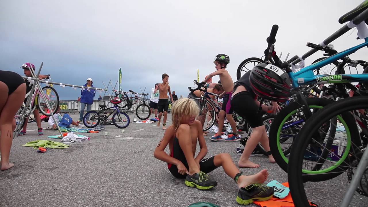 Marine nähert sich ein 9-jähriger Junge mitten in einem Triathlon, der alle anwesend sein