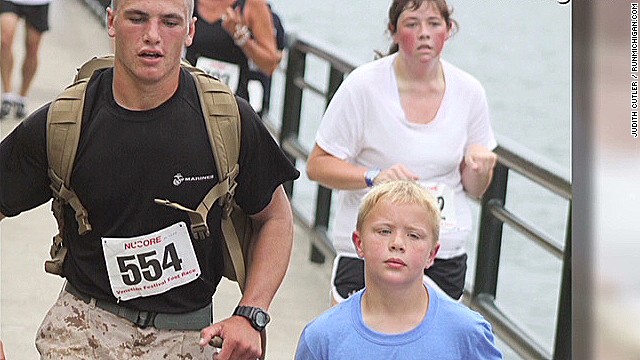 Ben sagte zu dem Marine, "Nein, ich möchte nur das Rennen beenden." Und in der Mögermutter von Crowd Ben wuchte Kim ängstlich, was so lange dauerte, dass Ben, um die Ziellinie zu überqueren. Sie sagte später: "Es war nur eine Meile, ich wusste, dass er müde war, ich war wie:" Wo ist er, wo ist er, wo ist er? "