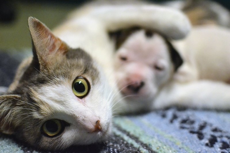Diese weiße Katze hatte die Welpen des benachbarten Hundes aus einem ungewöhnlichen Grund gestohlen