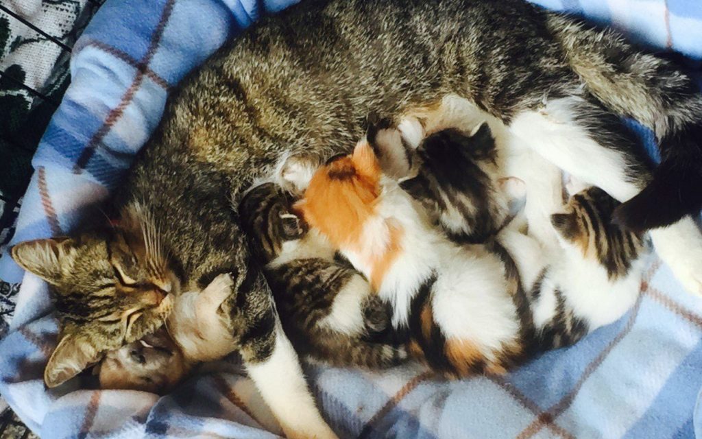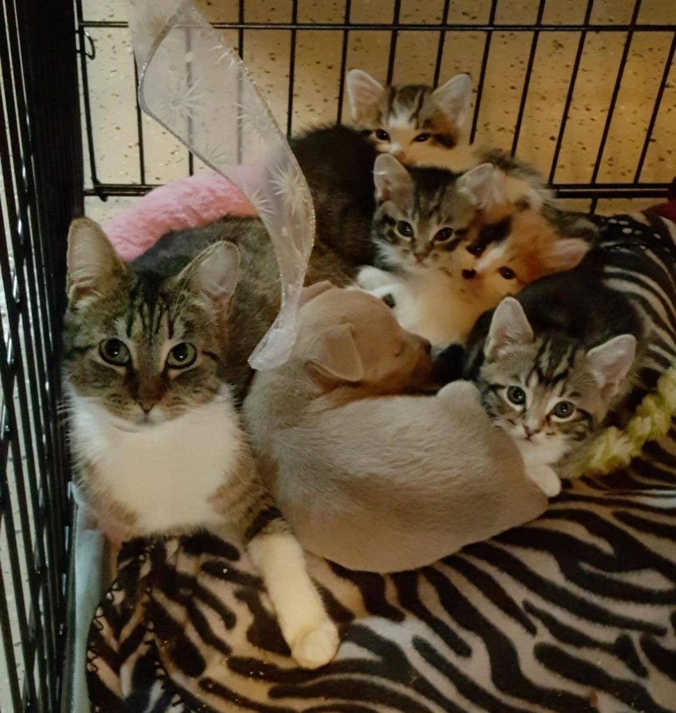 Gwen-the Cat hat kürzlich einen Wurf von Kätzchen geboren. Der mütterliche Instinkt der neuen Mutter übernahm sie über. Sie spielte oft und habe Spaß mit den Menschen in der humanen Gesellschaft, aber mit der Geburt ihrer Kätzchen war sie eine gewidmte Mutter, deren erster Priorität ihre Kinder waren.