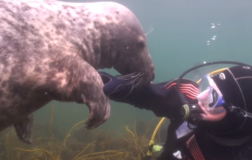 Nichts ist niedlicher als ein Siegel, das Sie mit riesigen schwarzen Augen betrachtet, die unter Wasser flackern. In diesem Bild konnte man sehen, dass dieses Siegel bei Garys Handschuhen knabbern wollte. Aber dann bat sie um etwas anderes, das beide Taucher überraschte. Sie wären erstaunt, was dieses Siegel von Gary wirklich wollte.