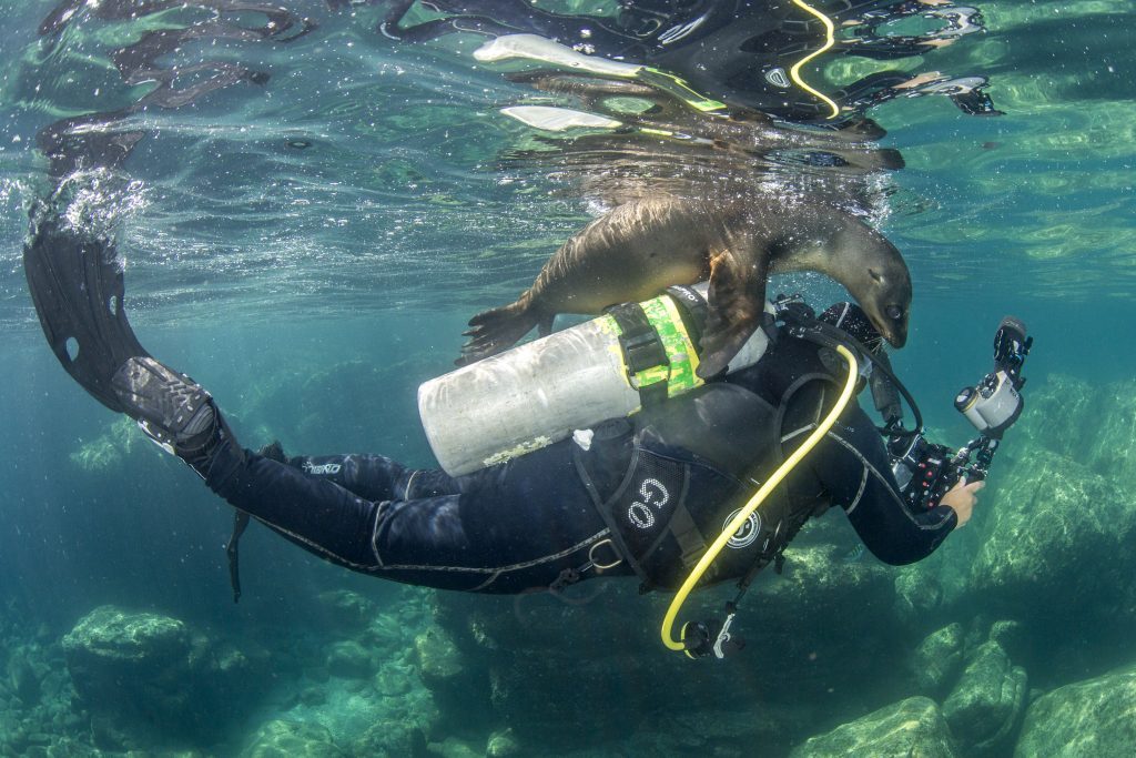Um die Taucher umzunehmen, versuchte der neugierige, neben Gary anzunehmen, wo dieses Siegel an der Tauchmaske von Garys Tauchanzug riechte. Es war sehr plötzlich der Siegel, als es dies tat, was Gary für einen Moment verblüfft machte. Aber wenn dieses Siegel die Nase rieb, konnte alles nur ein Lächeln auf das Siegel betrachten, das gerade den Moment genießt, wie es kann. Die Nachfrage war jedoch der erstaunlichste Teil nach Gary. Der Spaß hat gerade angefangen.