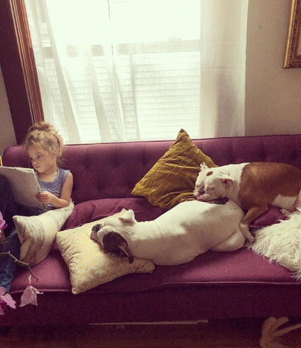 die Familie durch eine harte Zeit geht findet Trost in zwei Bulldoggen, die ihr Leben für eine gute ändern