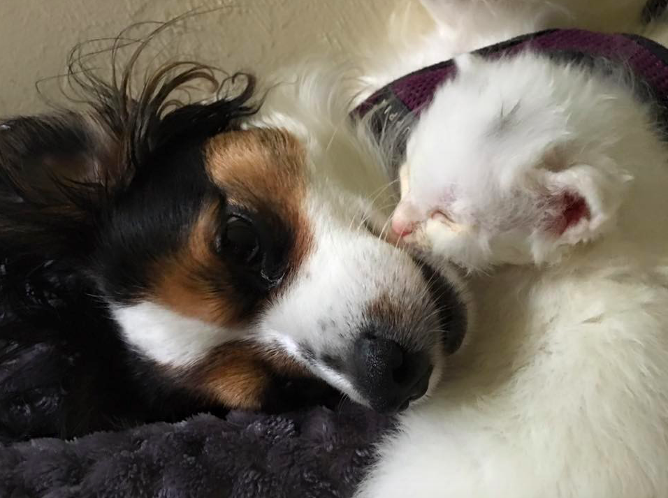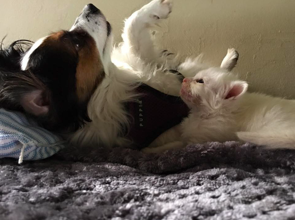 Als Megan sich schon lange um diese Babys kümmerte, wusste sie, dass es herzzerreißend sein wird, um sie gehen zu lassen. Der Katzenliebhaber entschied sich also, die drei Kätzchen zusammen mit ihrer Mutter anzunehmen. Bitsy könnte nicht glücklicher sein. Es dauerte jedoch eine Weile für Bitsy- und Vanille-Bean, um sich unter demselben Dach einzustellen. Immerhin ist eine erwachsene Katze und ein anderer ist ein erwachsener weiblicher Hund!