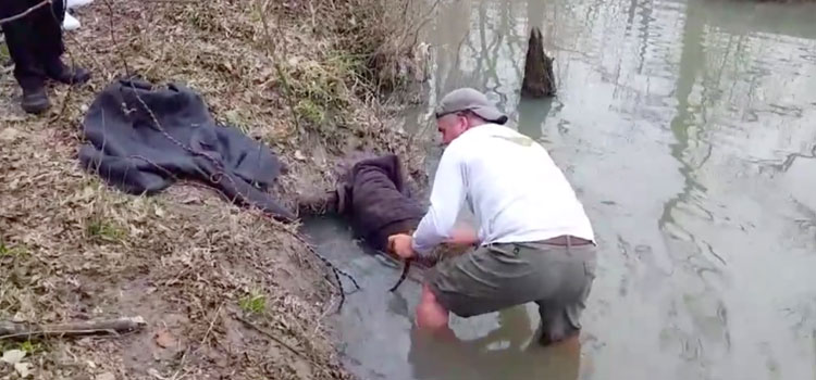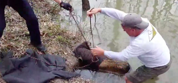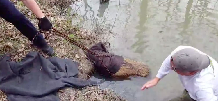 Da Jim und seine Hunde dem Tier näher kamen, waren die Hunde ziemlich unruhig, aber bellten sich überraschenderweise nicht auf das Tier. Jim bewegte sich näher und versuchte, das Tier nicht zu beschrecken. Es war kein Biber, als er dachte, es sei es. Es war ein großer Hund, der mit all seiner Macht für sein Leben kämpfte. Es schien, als würde er lange Zeit dort stecken. Glücklicherweise war es nicht zu spät und Jim war im Recht da, um diese arme Seele zu retten. Jim wartete nicht länger und nannte das Rettungsmannschaft, um dem Hund zu helfen.