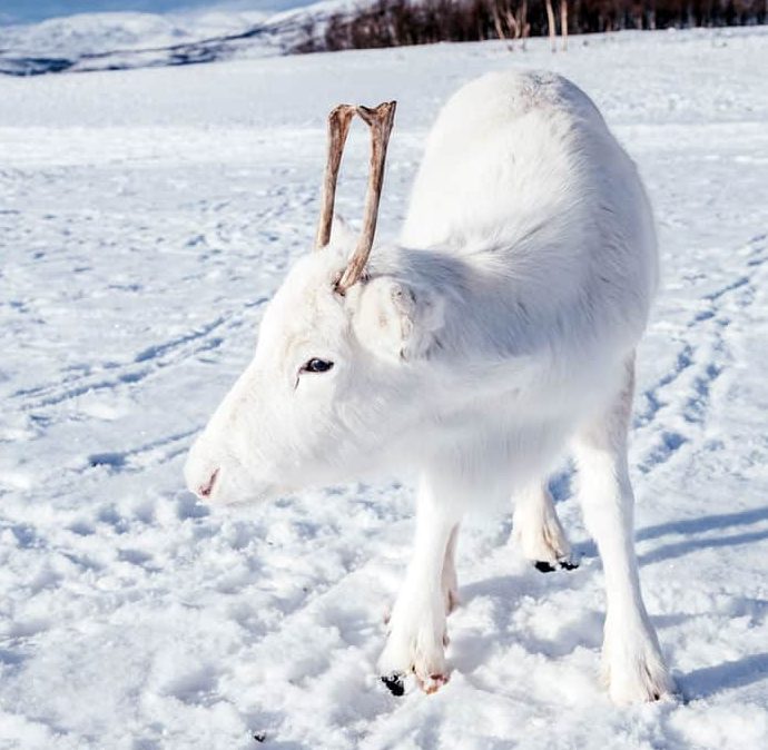 Rentiere sind ursprünglich aus dem Schneeland, sondern ein komplettes weißes Rentier ist eine der seltensten Rassen man jemals über kommen könnte. Und sicher, Mads war einer jener Glücklichen, die aus so nahe, eine solche majestätischen Tier Zeuge bekam. Darüber hinaus ist es nicht ein Albino Tier.