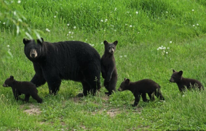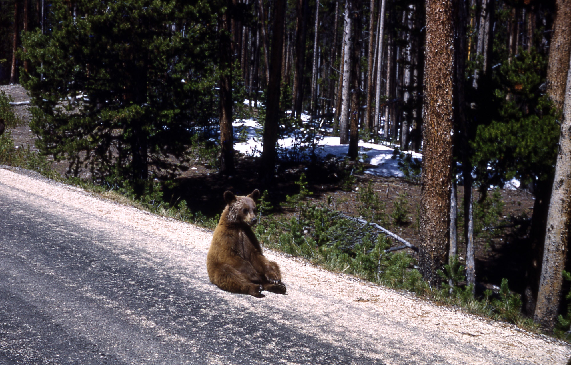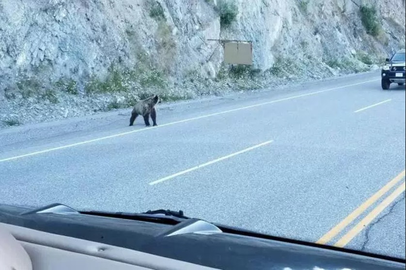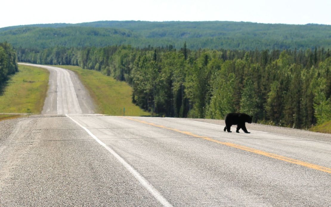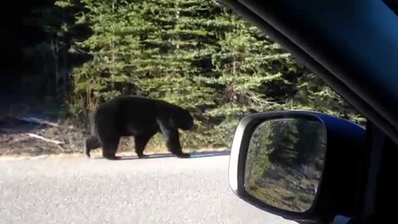 Thomas bemerkte, dass dies ein Mutterbär mit ihren Jungen war. Es sah aus, als würden sie versuchten, die Straße zu überqueren, aber einer der Jungen wurde auf der anderen Seite zurückgelassen. Das Junge konnte sich nicht bewegen und der Mutterbär konnte keiner von Babys hinterlassen.