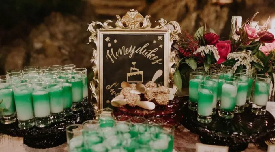 Sowohl Brittany als auch Clayton sind große Potterheads, dh Harry Potter-Fans. (Nur klar zu sein, dass Sie nicht eins sind). Sie stimmten auf dem Plan, Honeydukescandy-Bars in ihrer Hochzeit zu dienen. Das Paar beschloss auch, die Getränke auf der Grundlage verschiedener Harry Potter-Charaktere zu nennen. Hmm ... das ist jetzt interessant ...