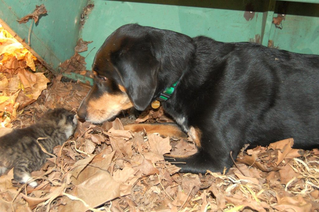 Pluto leckte die Kätzchen und wickelte sie in ihre Arme. Sie machte sie sogar ein Bad und entfernte den ganzen Staub von ihrem Fell. Sie behandelte sie als ihre eigenen Babys. Es war ein seltsamer Anblick, einen weiblichen Hund zu finden, der Kätzchen verwöhnt.