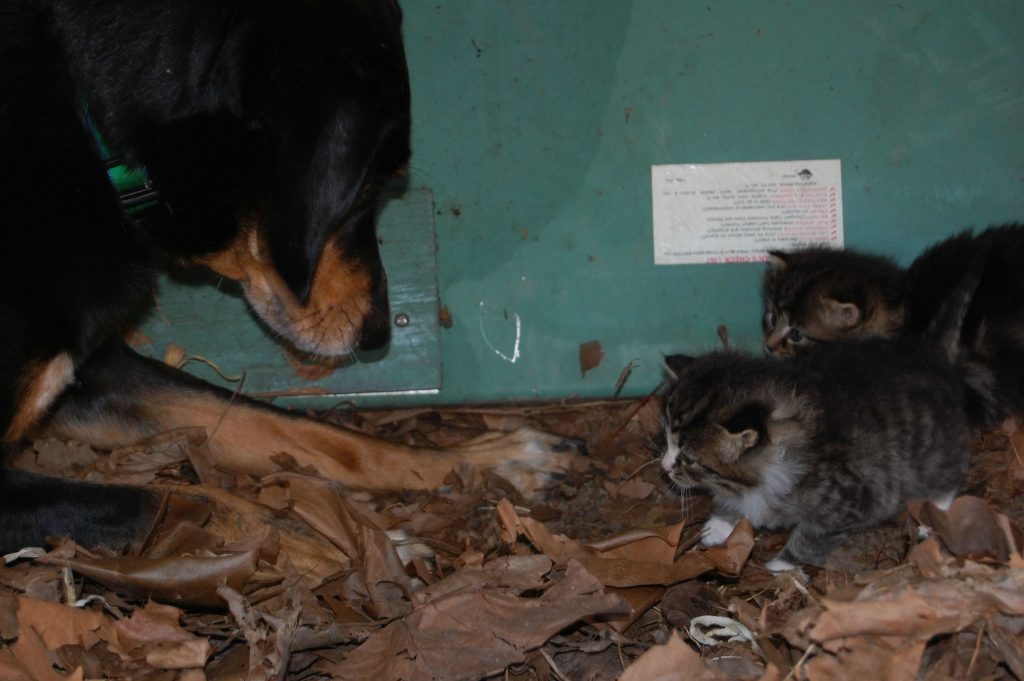 Pluto setzte sich neben den kleinen Kätzchen und starrte darauf, dass sie den Männern sehr seltsam war, aber es war ein entzückender Anblick, um Zeuge zu bezeugen. Normalerweise gehen Katzen und Hunde nicht gut zusammen, aber hier war Pluto so ruhig um die winzigen Kätzchen.
