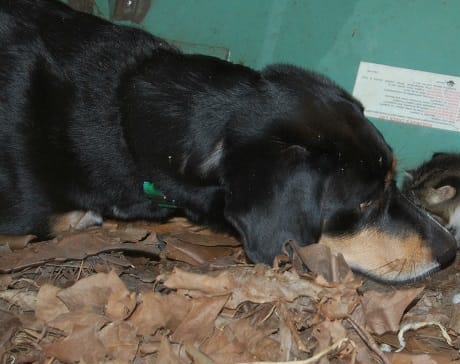 Es erschien, als ob Plutos mütterliche Instinkte eingetreten sind. Sie war um die Katzen und lieferte sie Wärme. Sogar die Kätzchen befürchten nicht, dass sie in der Nähe von ihr sitzen. Sie kuschelten sich alle zusammen, als wären sie langjährige Freunde. Das war wirklich süß.