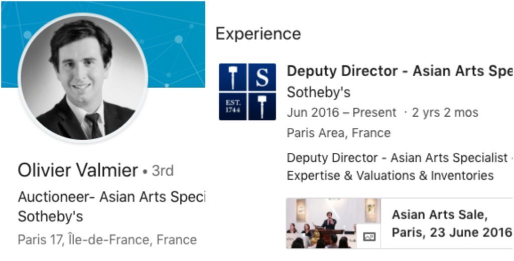 Diese Vase war nicht nur ein Glück für die Frau, sondern auch für Olivier Valmier. Nicht, dass er einige Dollar aus dem Höchstbietenden bekam, aber weil dies eine Pfadbrechung in seiner Karriere war. Er ist jetzt der stellvertretende Direktor für asiatische Kunstfachleute der Sotheby's. Die Auktion der chinesischen Vase machte sicherlich einen großen Einfluss auf den Namen des Sotheby und für seine Mitglieder.