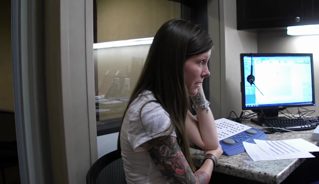 Sie saß in der Arztpraxis, ihre nervösen Hände greifen ihre Ohren, als sie aufmerksam wartete. Der Arzt brachte ihren Laptop zum ersten Mal, bevor sie Sarah bedeutete, um zu fragen, ob sie etwas hören konnte. Der Sanitäter entschied sich, das Gerät einzuschalten und Sarah zu fragen - "Kannst du mich hören?"