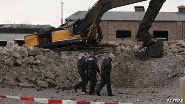 Eine WWII Bombe, die unter einer deutschen Baustelle gestellt worden war, einen Baggerfahrer getötet. Diese Bombe hinterließ auch weitere acht weitere Arbeiter, die stark verletzt wurden. Die Explosion wurde dadurch verursacht, dass auf Grund der Bagger Schmutz und Ablagerungen von der Stelle angehoben. Die Bombe machte ziemlich die Auswirkungen und führte zu den Vibrationen von Autos und Gebäuden, die einen Kilometer entfernt waren.
