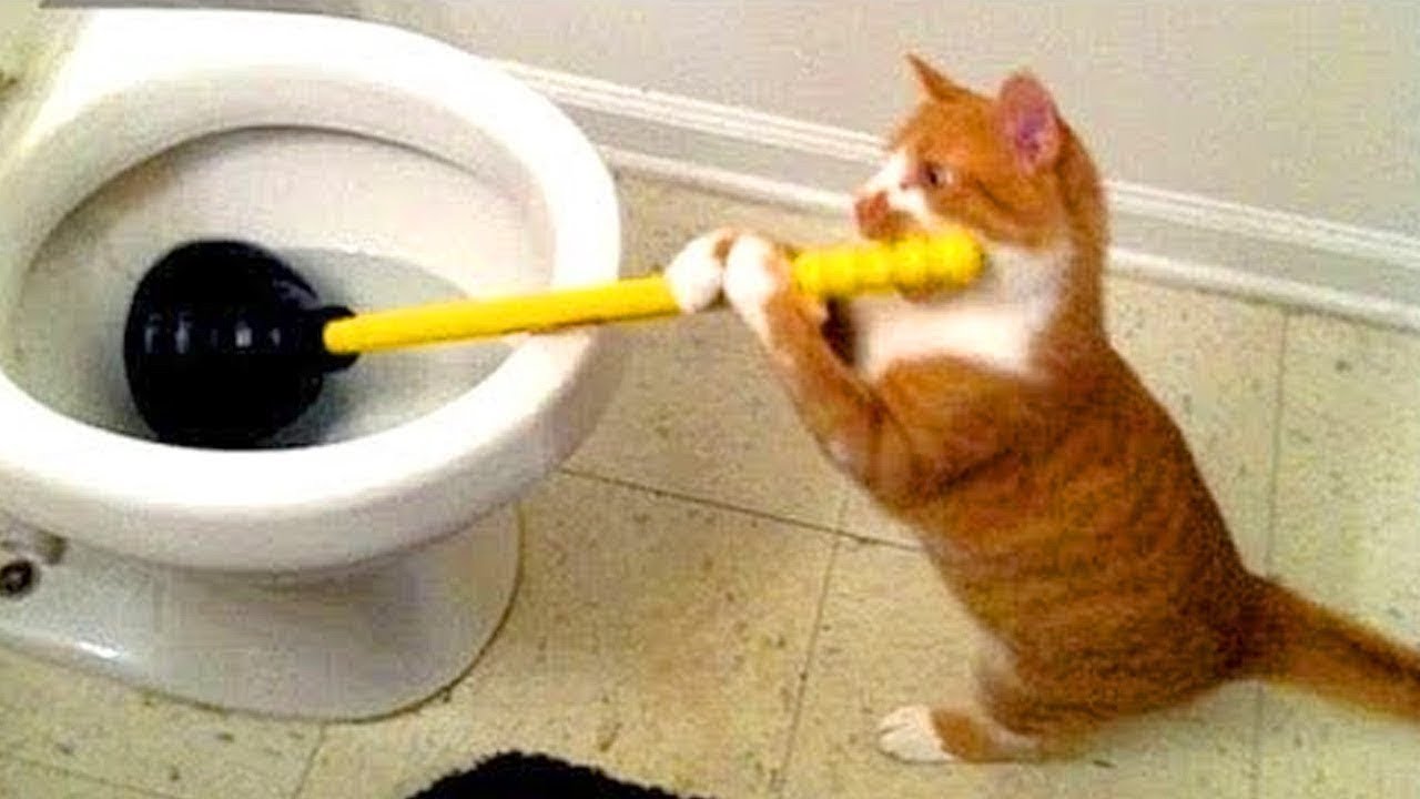 Katzen sind die lustigsten Tiere. Keine Zweifel, sie lassen uns hart lachen. Schau dir diese Katze an. Sie versuchte, ihrem Vater zu helfen, die Toilette zu reinigen. Wo hast du das Kätzchen gelernt? Oder haben Sie versucht, die WC-Rolle zu finden, die Sie dort hingezogen haben?