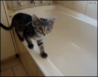 Nachdem ich fertig war Lachen erkennen ich, dass diese Katze tatsächlich, ob die Badewanne zu sehen versucht, mit Wasser gefüllt ist oder nicht. Und als sie erkannte, war es wahrscheinlich zu spät. Sie kann den Weg nicht finden, um diese Badewanne und Slip drin. Die Art, wie sie läuft von diesem Raum raus ist viel zu lustig. Seien Sie nicht, dass Angst Kitty, es ist nur Wasser.