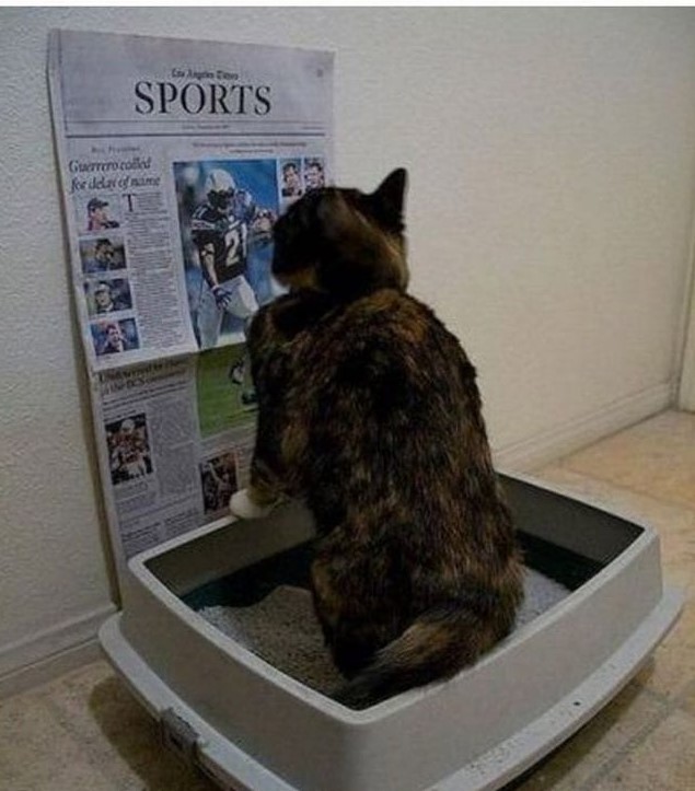 Okay, ich weiß, dass die menschliche Spezies hat diese Gewohnheit zu lesen Zeitung am Morgen in den Bädern, aber wann haben Haustiere bekommen in diese seltsame Sache? Schauen Sie sich das Bild, wie das, was Sie wurden sogar zu lesen Kitty versucht? Wissen Sie wirklich, wie zu tun, um die Buchstaben und Wörter Arbeit? Die Bestimmung, mit der sie zu lesen sind, macht sicherlich ich über die Katze der kognitiven Fähigkeiten Wunder. Darüber hinaus, wie erreicht die Zeitung auch dort?