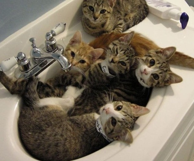 Wenn Sie dachten, Ihre Hände abzuwaschen, tut mir leid, Sie zu enttäuschen, aber das ist sicher, dass nicht passieren wird. Dieses Waschbecken hat sich für diesen Kitty und ihrer Familie zu einem Schlafplatz umgewandelt. Sie haben eine Gala-Zeit, die dort kuschelt.
