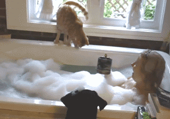 Ein bloßer Blick auf dieses Bild macht mich zum Lachen. Dieses Mädchen wurde genießen ihren Kaffee, bis die Katze zu Schritt in die Wanne entscheidet. Die Reaktion der Mädchen bringt mich zum Lachen härter als der Ruck diese Katze wie wirkt. Hey Mama, wir haben einen kühlen Sonntag Mittag Bad zusammen. Was wie ein Streichelzoo aussieht, ist eigentlich ein Bad. Diese Frau würde beginnen diese Kitty hassen für das, was er tat in diesem Augenblick.