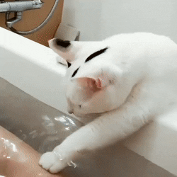 Dieser Look ist einfach witzig. Als ob sie einen elektrischen Schlag und kein Seifenbad erhielt. Die Katze scheint mit dieser grausamen Welt satt zu sein und scheint auf der Suche nach dem ewigen Frieden zu sein. Oh armer Seele, es ist nur ein Bad. Paddeln Sie in diesem Wasser und handeln Sie nicht wie ein totes und zerbrochener Kerl. Dieses Bad hat all ihr Glück im Leben weggenommen. LOL!