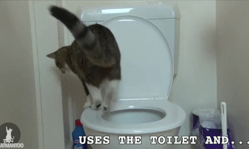 Was habe ich gerade gesehen? Hat diese Katze zum ersten Mal eine Toilette bündig gesehen? Ihre Ausdrücke lassen mich amüsiert. Vielleicht rollt ihr Kopf genau wie das Spülwasser. Ich hoffe, dass sie in einer guten Gesundheit aus dem Badezimmer umgeht und nicht schwindelig ist. Ihr Aussehen stiehlt einfach die Show und man kann nicht genug davon haben.