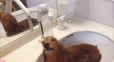 Dies scheint der einzige Hund zu sein, der sein kühles Bad ist zu schätzen. Nicht nur genießt er ein Bad gibt, aber er ist auch Schluck Wasser. Dieser Kerl Ausdrücke machen mich an ihn neidisch. Eine solche ruhig und entspannt Mal, wenn er dort ist. Was sagen die Menschen, lassen Sie uns tauchen Sie ein in ein solches Bad?