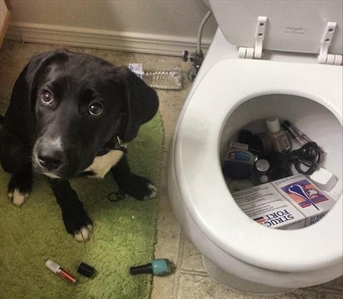 Dies könnte für Sie lustig aussehen, aber es ist überhaupt nicht lustig für die Dame, der dieser Hund gehört. Dollar Wert Kosmetika und alles ist gespült. Diese Ausdrücke zeigen wirklich, dass es ihm leid tut. Armer Hund, er weiß nicht, dass diese Ausdrücke ihn nicht vom Zorn des Frauen retten konnten.
