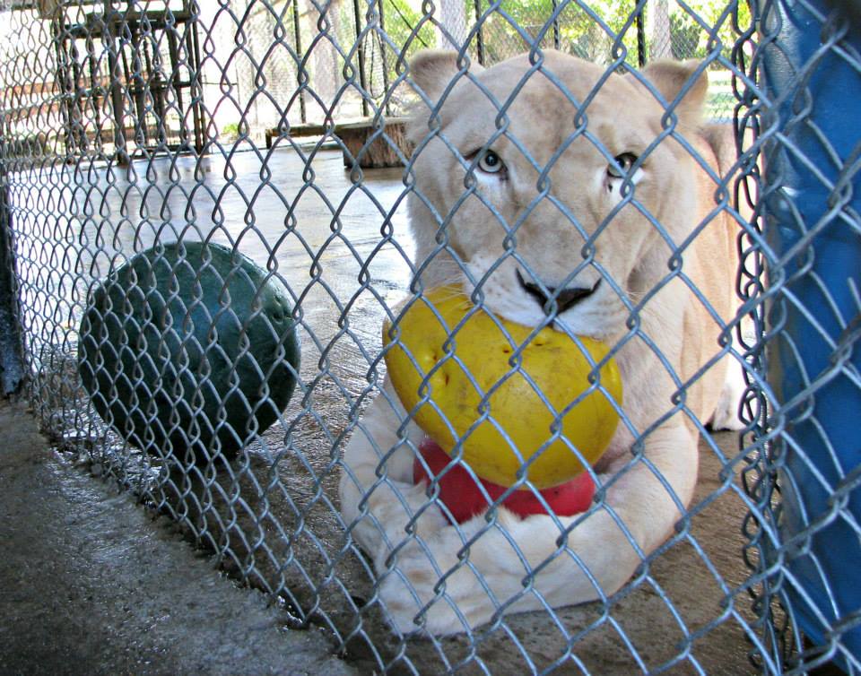 Kahn war nur sechs Jahre, als er gerettet wurde. Dieser mächtige Löwe war ein Showtier. Sein Hauptauftrag bestand darin, Gäste in privaten Shows zu blenden und zu amüsieren. Als Kahn im Zentrum ankam, war es überraschend, zu sehen, dass er sehr aggressiv war, als er zum Essen kam, und war sogar am Ende seines Schwanzes gebissen, höchstwahrscheinlich auf Stress und Angst.