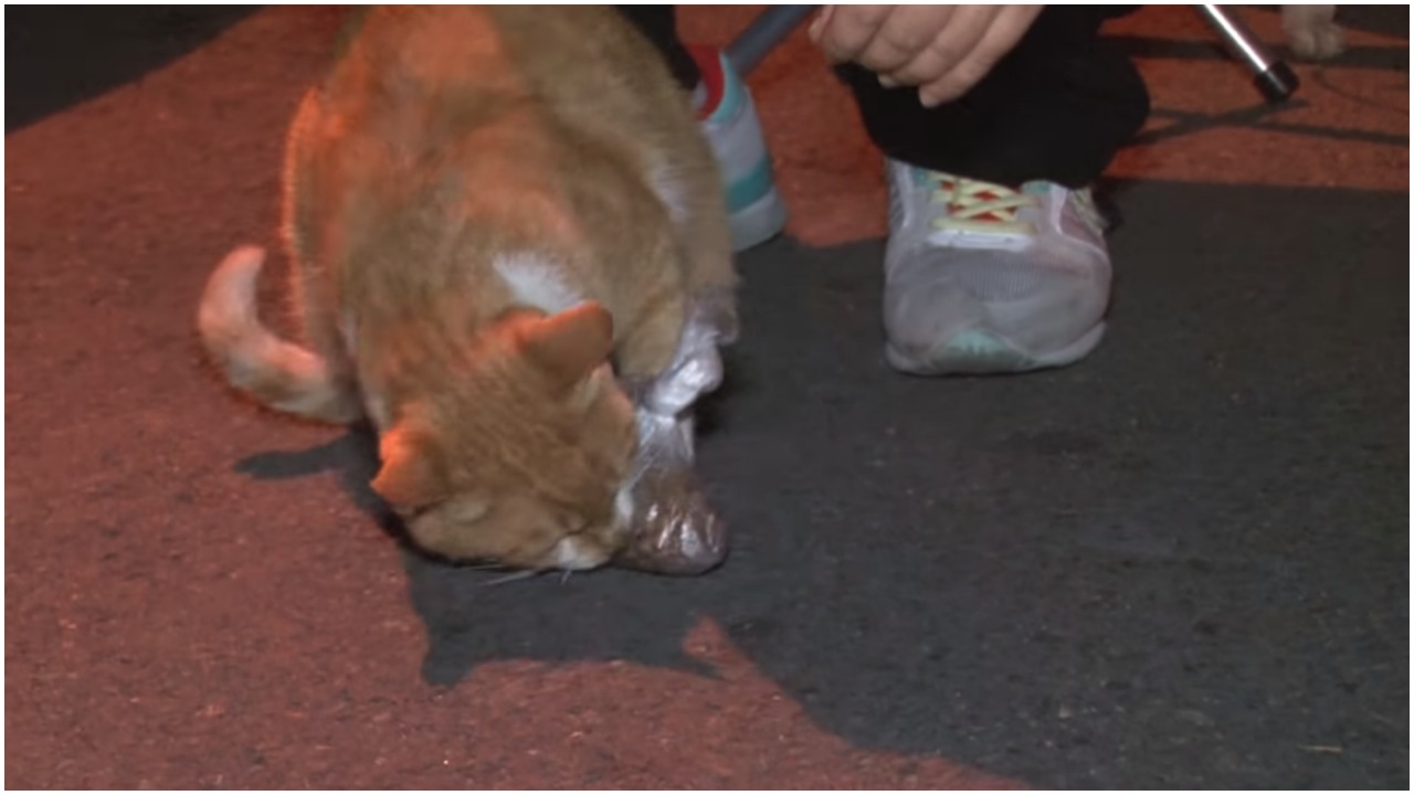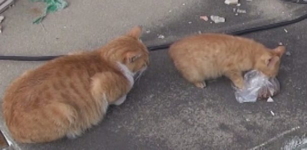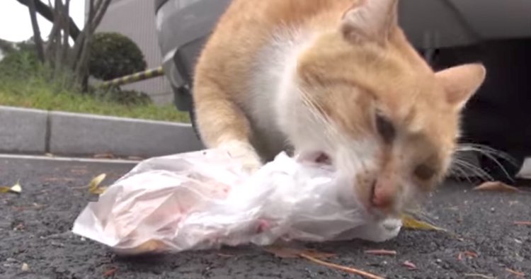 Diese Katze würde nur Lebensmittel in Plastiktüten akzeptieren, und wenn die Freiwilligen herausfanden, wurden sie mit Tränen überwältigt