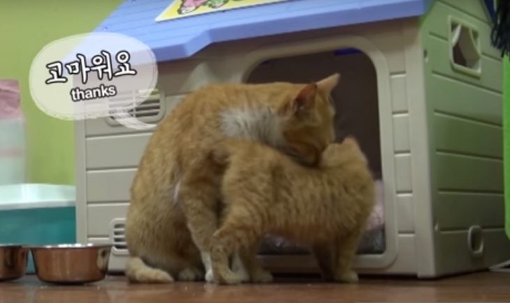 Als die Freiwilligen zu den Freiwilligen zu Dongsooks Wohnsitz kamen, um sie und ihr Kätzchen zu füttern, versteckte sich der letztere normalerweise hinter sich oder der Decke, aber dann, aber selbst das Kätzchen, das sich den Menschen aufgewärmt hat, und jetzt konnten sie sich an ihre Schritte vorstellen.