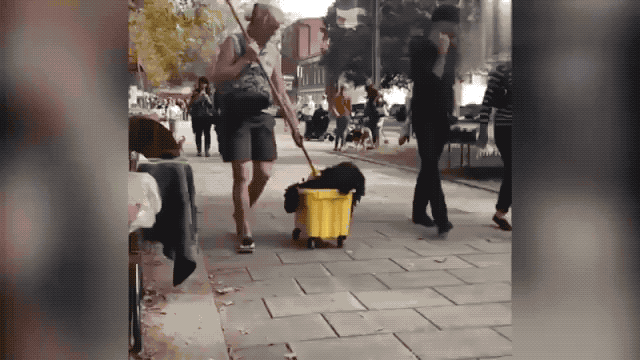 Wenn Sie denken, was dieser Kerl so ist, wie er den Straßen versuche, die Straßen zu mopen. Wenn Sie genau hinschauen, werden Sie sehen, dass dies kein schwarzer Mopp ist, sondern ein Hund. Wir glauben, dass dieser Hund für 2018 den besten Halloween-Kostümpreis gewonnen hat. Versuchen Sie nicht, ihn in sein Spiel zu schlagen, er wird Sie wegwischen.