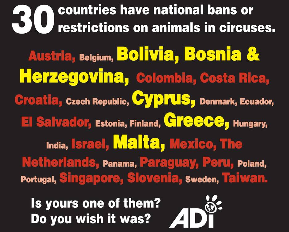 Tier Defenders International ist eine spezielle Organisation, die in mehreren Ländern immer Verbote geholfen angewendet. Sie wurden für eine lange Zeit dies zu tun. Giving das Leben wilder Tiere, dass sie wirklich verdienen. Dank ihnen, Peru, Bolivien, Guatemala, Kolumbien, Griechenland, Mazedonien und vielen europäischen Ländern schließlich die Verwendung dieser Tiere in den Zirkussen verboten. Es ist nicht, dass ADI es allein getan hat, aber sie haben ein wichtiger und fester Bestandteil des gesamten Protests gewesen.