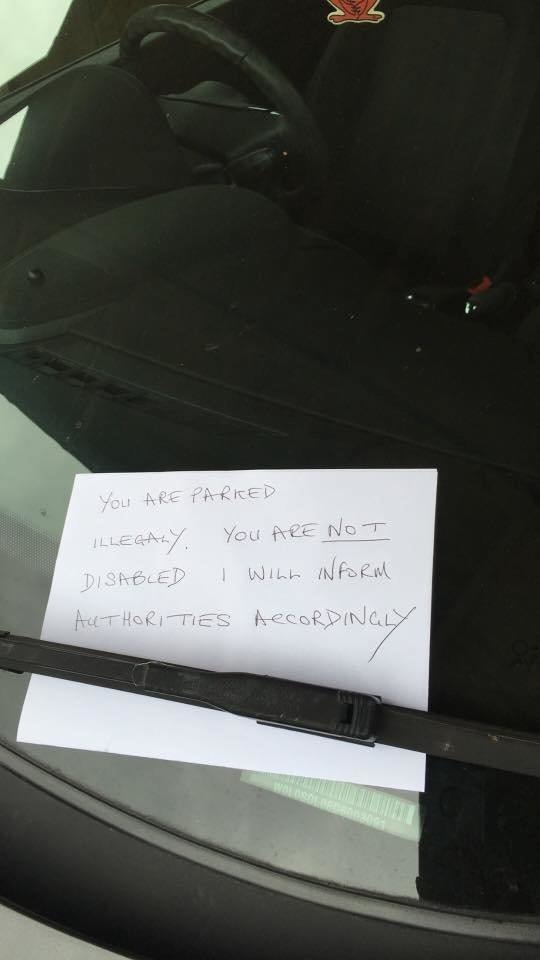 Es war nicht nur der Note, der sie verrückt machte, aber sie hat auch ein Problem mit den Fremden, die ohne zu wissen, dass ihr Zustand sie beurteilt hat, wenn sie ihr Auto auf der behinderten Stelle geparkt hat.