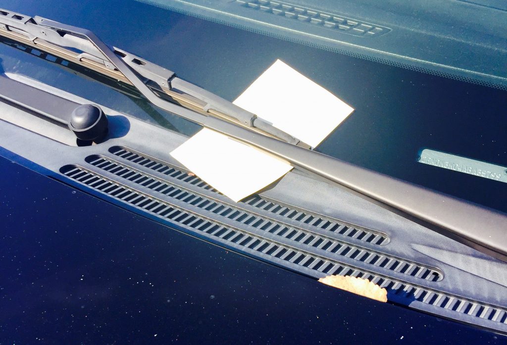 Frau findet eine unerwartete Note auf ihrer Windschutzscheibe, nachdem sie ihr Auto in der Handicap-Stelle parkt