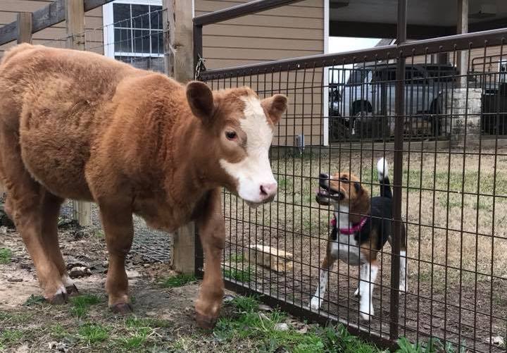 Eine Reihe von Ereignissen führte diese Kuh, um zu glauben, dass sie eigentlich ein Hund ist