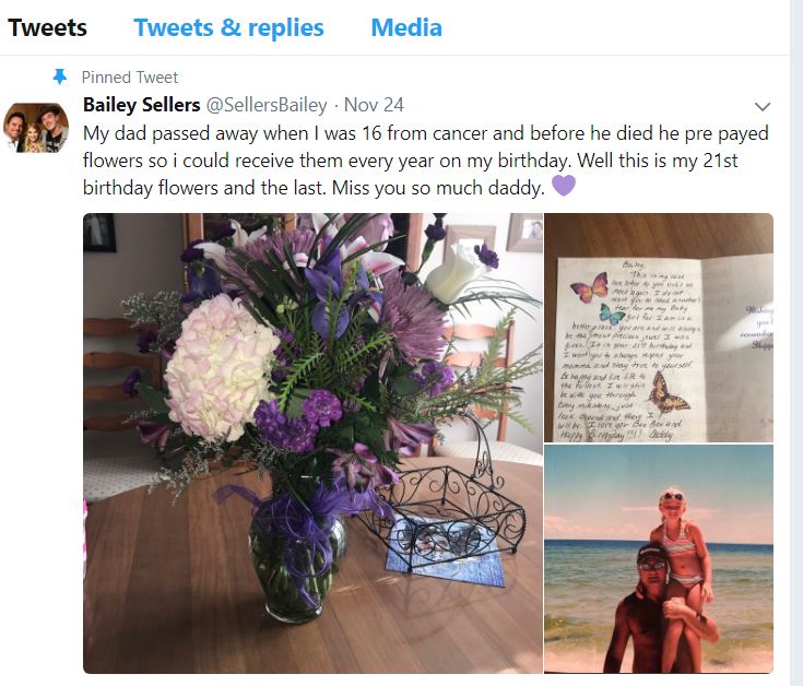 Bailey wurde erstaunt und überwältigt gleichzeitig von dieser süßen Geste ihres verstorbenen Vaters. Sie nahm nach Social Media und teilte ein Bild online auf ihrem Twitter-Konto der Blumen und der Karte, die sie erhalten hatte. Und was als nächstes passiert ist, war etwas, was Bailey in ihren wildesten Träumen nicht einmal vorgestellt hatte.